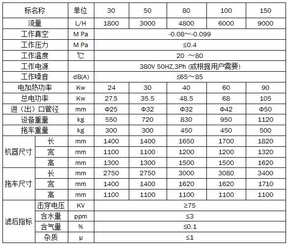 F系列拖車立式真空濾油機(防爆可定制)參數: