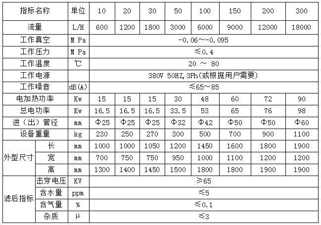 ZL系列絕緣油多功能真空濾油機(jī)參數(shù):